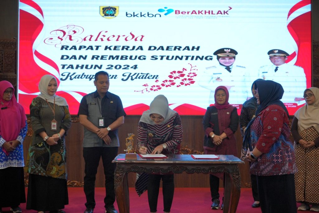 Dalam rekerda tersebut, turut digelar penandatanganan komitmen bersama oleh Bupati Klaten, Sri Mulyani, Sekda Klaten Jajang Prihono, serta OPD terkait, pemerintah desa, dan mitra kerja.