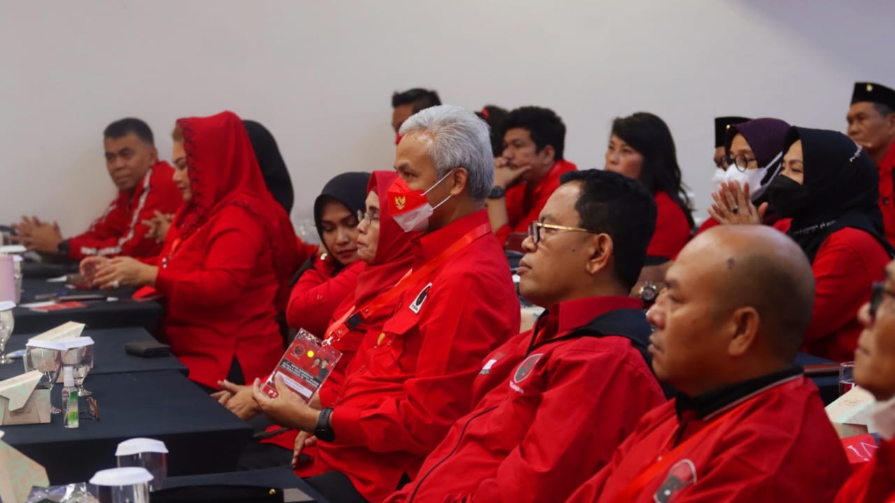 “Di sini mewujudnyatakan bahwa kita petugas partai benar-benar betul. Kalau tak disini, tak bisa ketemu Mas Ganjar, Mas Bobby. Tadi pagi dengan anak presiden (Gibran, red) di belakang,” kata Markus yang mengundang tawa para kepala daerah lainnya.