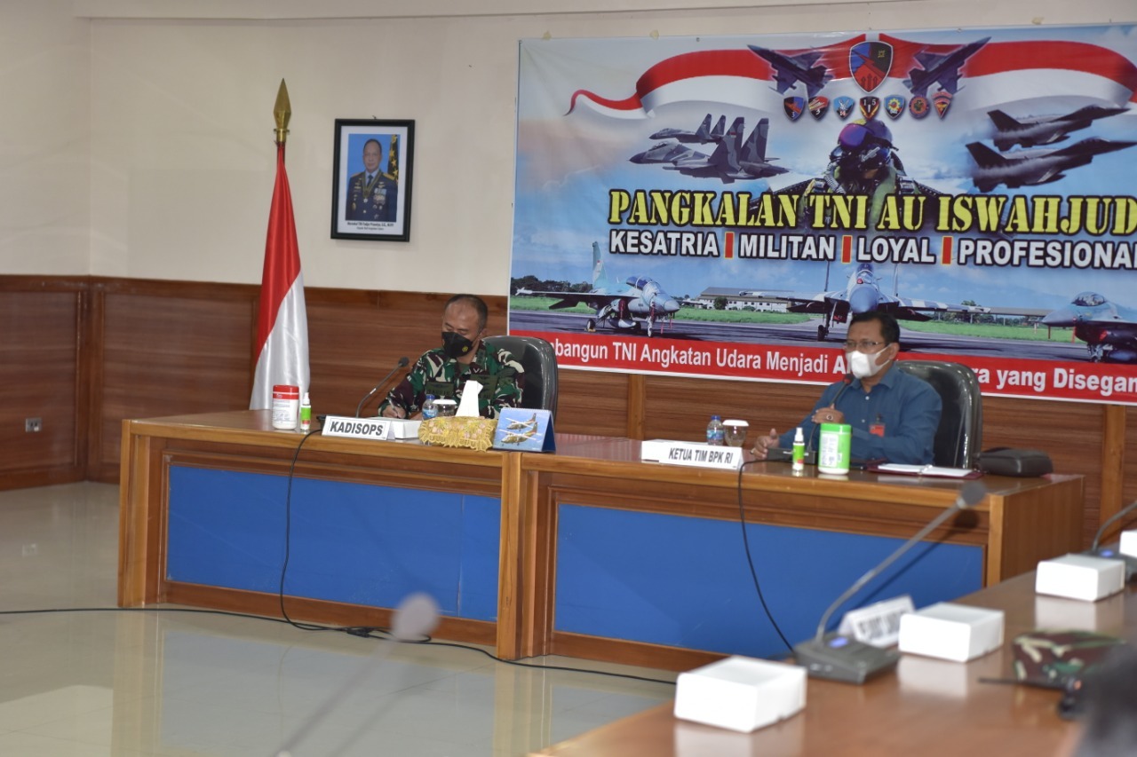 Komandan Lanud Iswahjudi Marsma TNI M. Untung Suropati, S.E., dalam sambutannya yang dibacakan Kadisops Lanud Iswahjudi, menyampaikan ucapan selamat datang kepada tim BPK RI, dan mengharapkan kedatangan tim BPK RI yang merupakan mitra kerja ini dapat membantu mengoptimalkan kinerja satuan di lanud iswahjudi, agar lebih baik dan akuntabel.