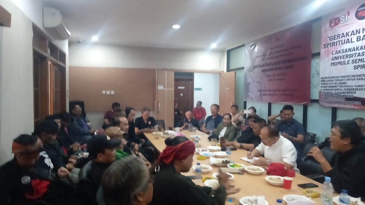 Diskusi yang dihadiri sejumlah elemen masyarakat nasionalis Jawa Barat, seperti ; Forum Diskusi Sinergi Indonesia (FDSI), Barikade 98, Komunitas Jabar Sejati (KJS), Gerakan Bhineka Nasionalis (GBN) Jabar, Barusan Olot Masyarakat Adat (BOMA), Pemuda Demokrat, dan elemen yang lainnya.merupakan sikap tegas dari adanya upaya penolakan pembangungan Patung Bung Karno di Kota Bandung oleh Aliansi Pergerakan Islam (API).