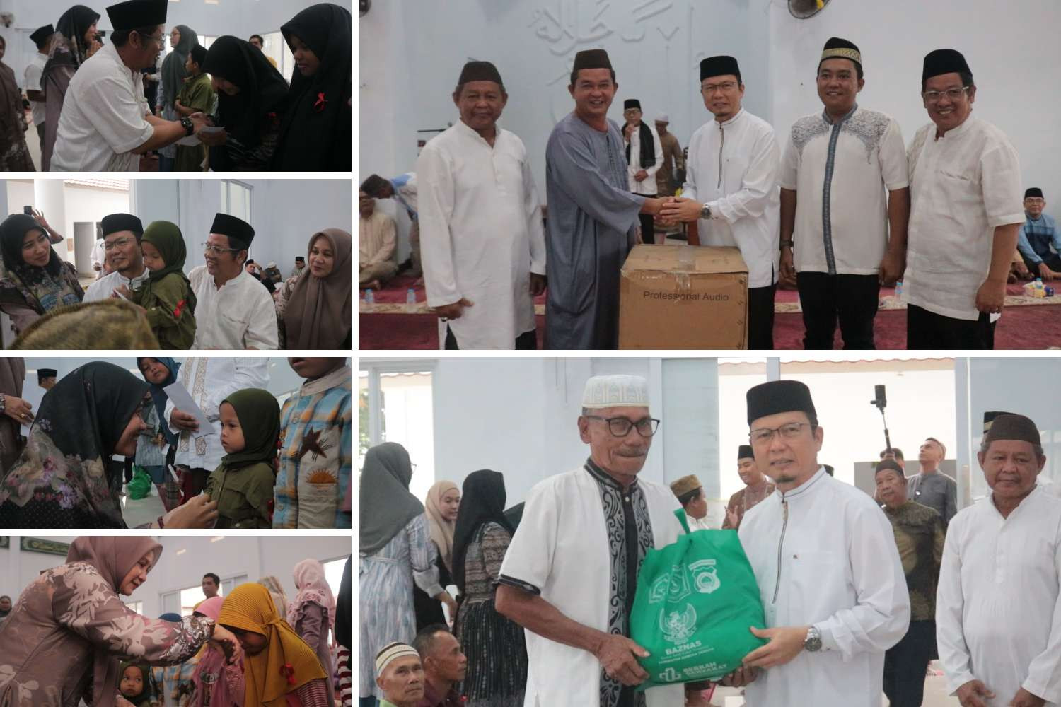 Dalam Safari Ramadan kali ini, Bupati Bateng, Algafry Rahman, bersama Baznas Bangka Tengah membagikan 40 paket sembako kepada warga yang kurang mampu, 15 santunan kepada anak yatim, 14 santunan kepada guru salafiyah, serta memberikan 1 unit sound portable kepada Masjid Al-Mubarrakah.