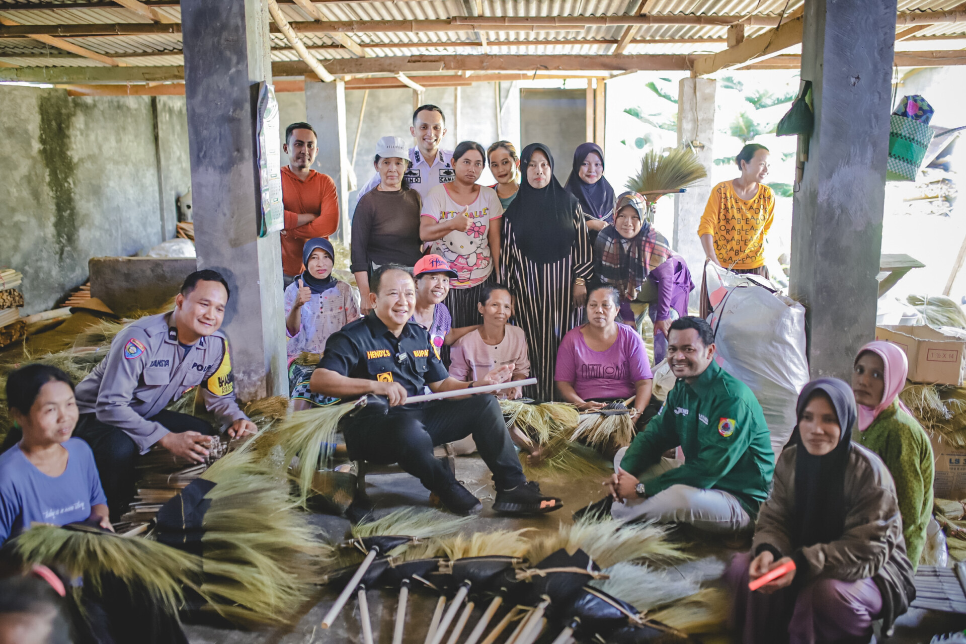 “Bahagia sekali saya ada di tengah-tengah ibu-ibu yang luar biasa, bekerja membuat sapu rayung, ini produk UMKM Jember silakan diborong,” ujar Bupati Hendy.