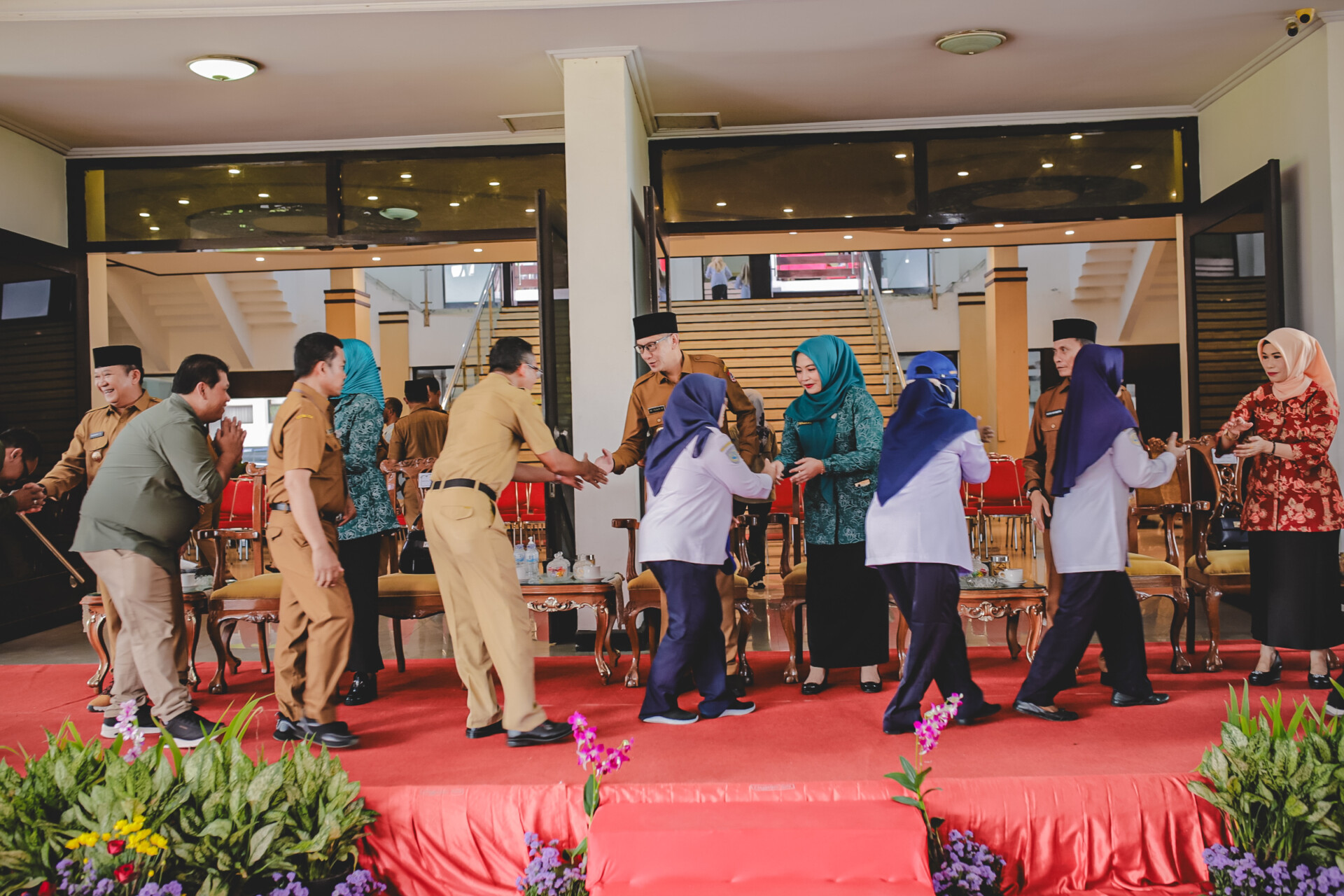 Upacara ini diakhiri dengan halal bihalal seluruh pegawai dan karyawan di lobi utama Kantor Pemkab Jember (Red)