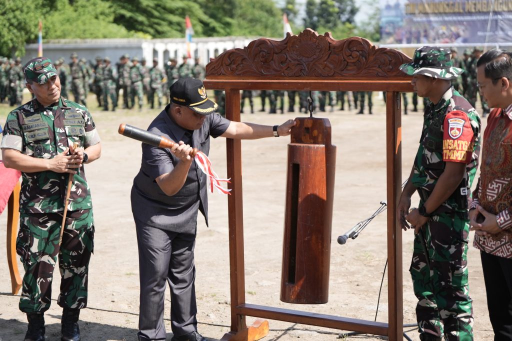 Sleman – Bupati Sleman, Harda Kiswaya membuka TNI Manunggal Membangun Desa (TMMD) Reguler ke-124 Tahun 2025 pada Selasa, (6/5/2025) di Lapangan Pondokrejo Tempel. Bertindak sebagai Inspektur Upacara, Harda membuka secara simbolis TMMD Reguler ke-124 yang ditandai dengan pemukulan kentongan.