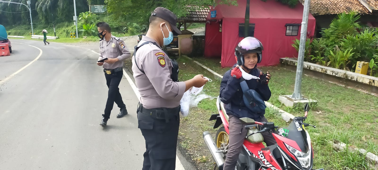 LEBAK – PELITAKOTA.ID , Guna Penanggulangan dan pencegahan penyebaran virus Covid-19, Polsek Cipans Polres Lebak Polda Banten tak henti hentinya memberikan himawan dan melaksanakan pembagian masker secara gratis kepada Warga yang melintas di Jln Raya , Cipanas Bogor Lebak. Minggu (21/11/2021)