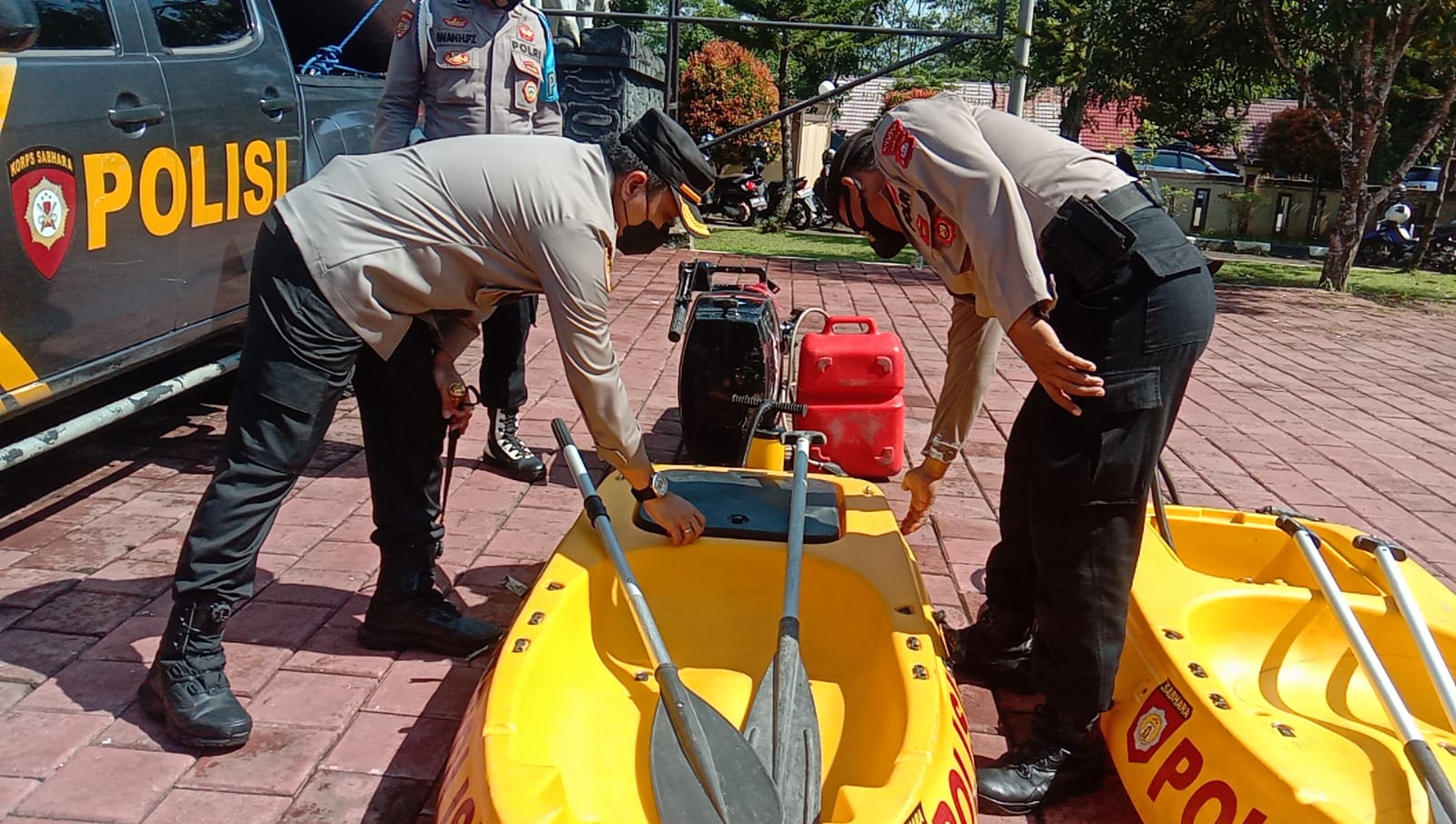 Kapolres Lebak Polda Banten AKBP Wiwin Setiawan,SIK,M.H didampingi para PJU melaksanakan pengecekan satu persatu peralatan dari mulai perahu, tali, gergaji, kendaraan Roda Empat maupun Roda Dua, Dapur umum, Pelampung, Cangkul dan lain-lainya.