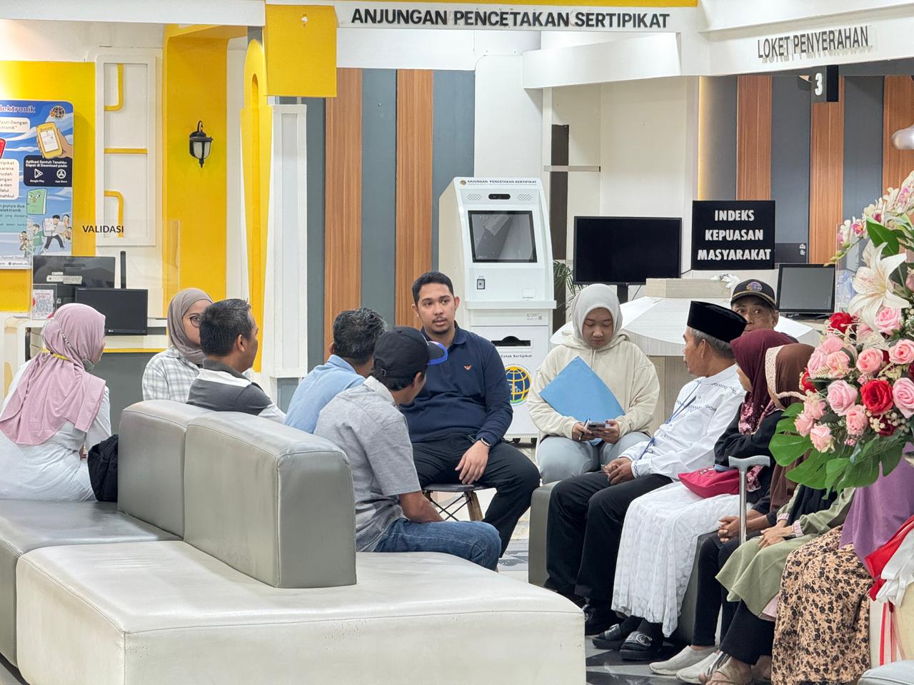 “Berdasarkan data hari ini ada sekitar 20 orang masyarakat yang datang. Pelayanannya beragam, mulai dari pengambilan sertipikat, permintaan informasi, ganti blanko, pendaftaran perubahan hak, peralihan hak waris, SK hak, sampai pengukuran,” ungkap Dian Adiansyah Syarif.