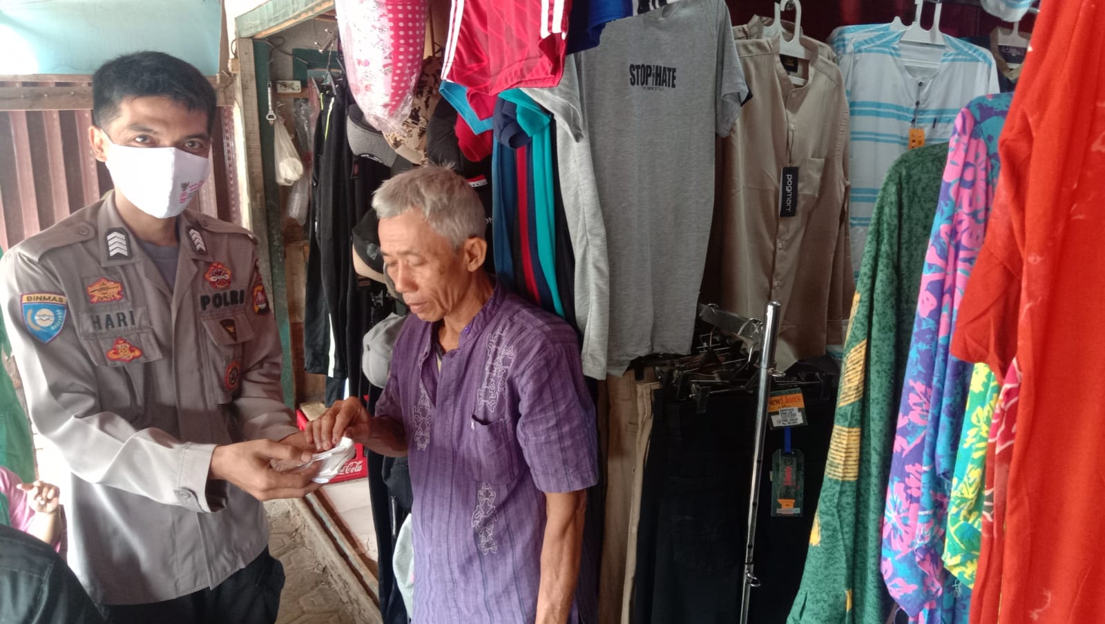 Lebak || Pandemi Covid-19 yang belum berakhir Personil Polsek Cipanas, terus memberikan Himbauan kepada warga masyarakat yang melintas di Terminal Pasar Gajrug Desa Bintangresmi Kecamatan Cipanas tentang pentingnya Prokes dan juga membagikan Masker gratis Pada hari Senin (27/06/2022)