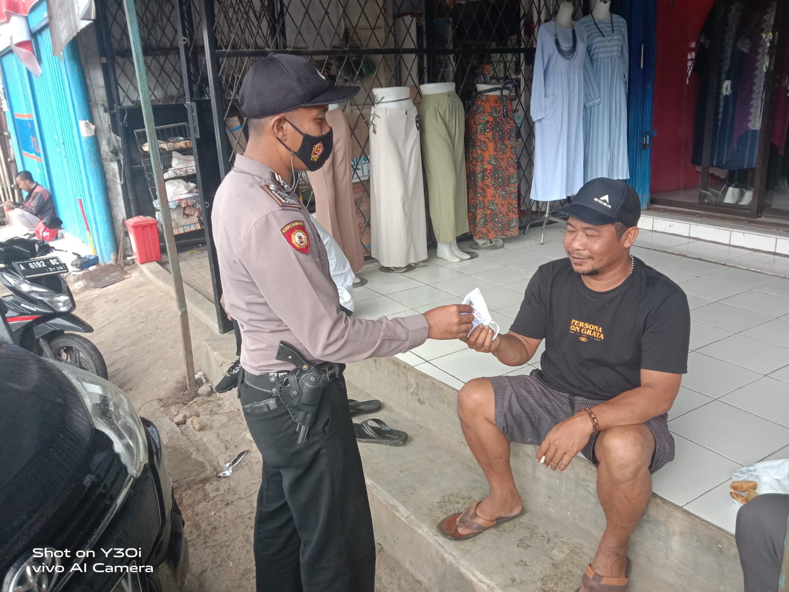 Lebak. || Pandemi Covid-19 yang belum berakhir Personil Polsek Cipanas, terus memberikan Himbauan kepada warga masyarakat yang melintas di Terminal Pasar Gajrug Desa Bintangresmi Kecamatan Cipanas tentang pentingnya Prokes dan juga membagikan Masker gratis Pada hari Kamis (09/06/2022)