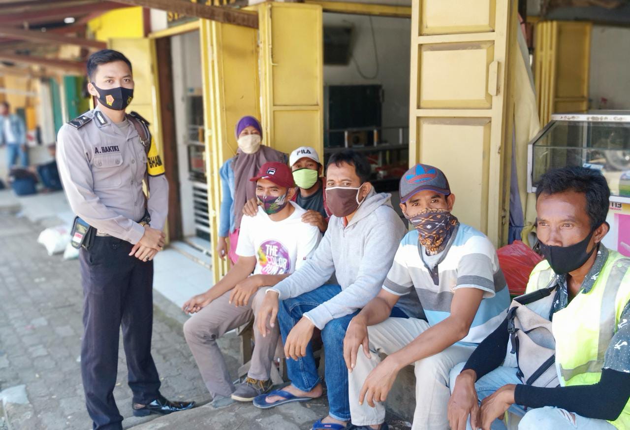 Lebak || Pandemi Covid-19 yang belum berakhir Personil Polsek Cipanas, terus memberikan Himbauan kepada warga masyarakat yang melintas di Terminal Pasar Gajrug Desa Bintangresmi Kecamatan Cipanas tentang pentingnya Prokes dan juga membagikan Masker gratis Pada hari Minggu (05/06/2022)