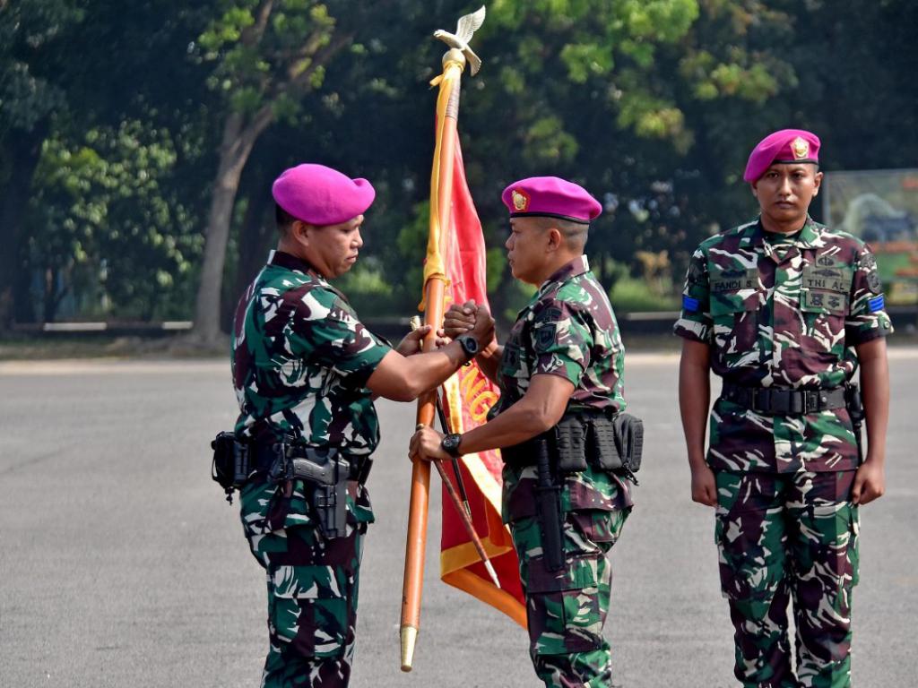 Sidoarjo – Komandan Brigif 2 Marinir, Kolonel Marinir Arip Supriyadi, S.H., M.M., M.Tr.Hanla., ditunjuk sebagai Komandan Kontingen Binsat Pasmar 2 yang akan bertanding pada ajang Lomba Pembinaan Satuan (Binsat) Korps Marinir tahun 2024. Penunjukan ini ditandai dengan penyerahan Bendera Kontingen oleh Komandan Pasmar 2, Brigjen TNI (Mar) Nanang Saefulloh, S.E., M.M., kepada Kolonel Marinir Arip Supriyadi di lapangan apel Kesatrian Marinir R. Suhadi Brigif 2 Mar Gedangan, Sidoarjo, pada Kamis (24/10/2024).