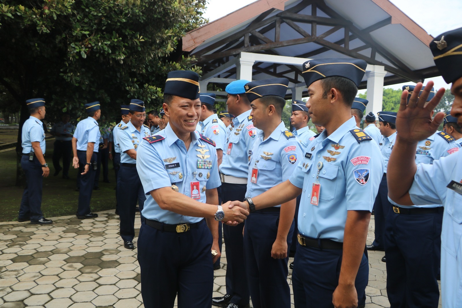 Upacara ditandai pelepasan dan penyematan pangkat baru secara simbolis oleh Komandan Lanud Iswahjudi Marsma TNI Irwan Pramuda, SE, MM.