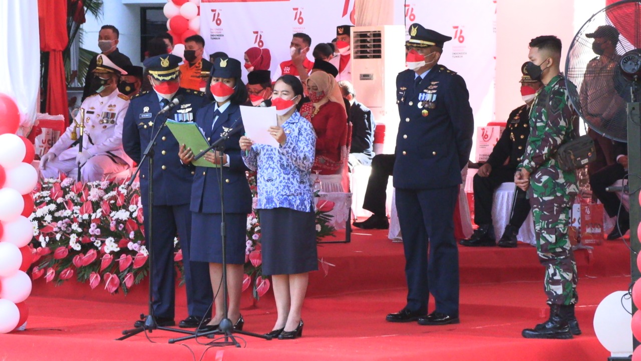 Naskah Teks proklamasi dibacakan dengan lantang oleh Ketua DPRD Provinsi Sulawesi Utara Bapak dr. Andi Silangen. Dalam kesempatan Upacara Peringatan HUT Kemerdekaan RI ke-76 ini, Lanud Sri mendapatkan kepercayaan sebagai penyelenggara upacara, dimana Mayor Kal Ramdhani bertugas sebagai Perwira Upacara didampingi Mayor Adm Setyo sebagai wakil Paup. Mayor Sus Toni Atmaja sebagai Komandan Upacara dan Lettu Sus Gede Dylan Pratama Wijaya sebagai Danpaskibraka serta beberapa personel Lanud Sri lainnya sebagai pendukung.