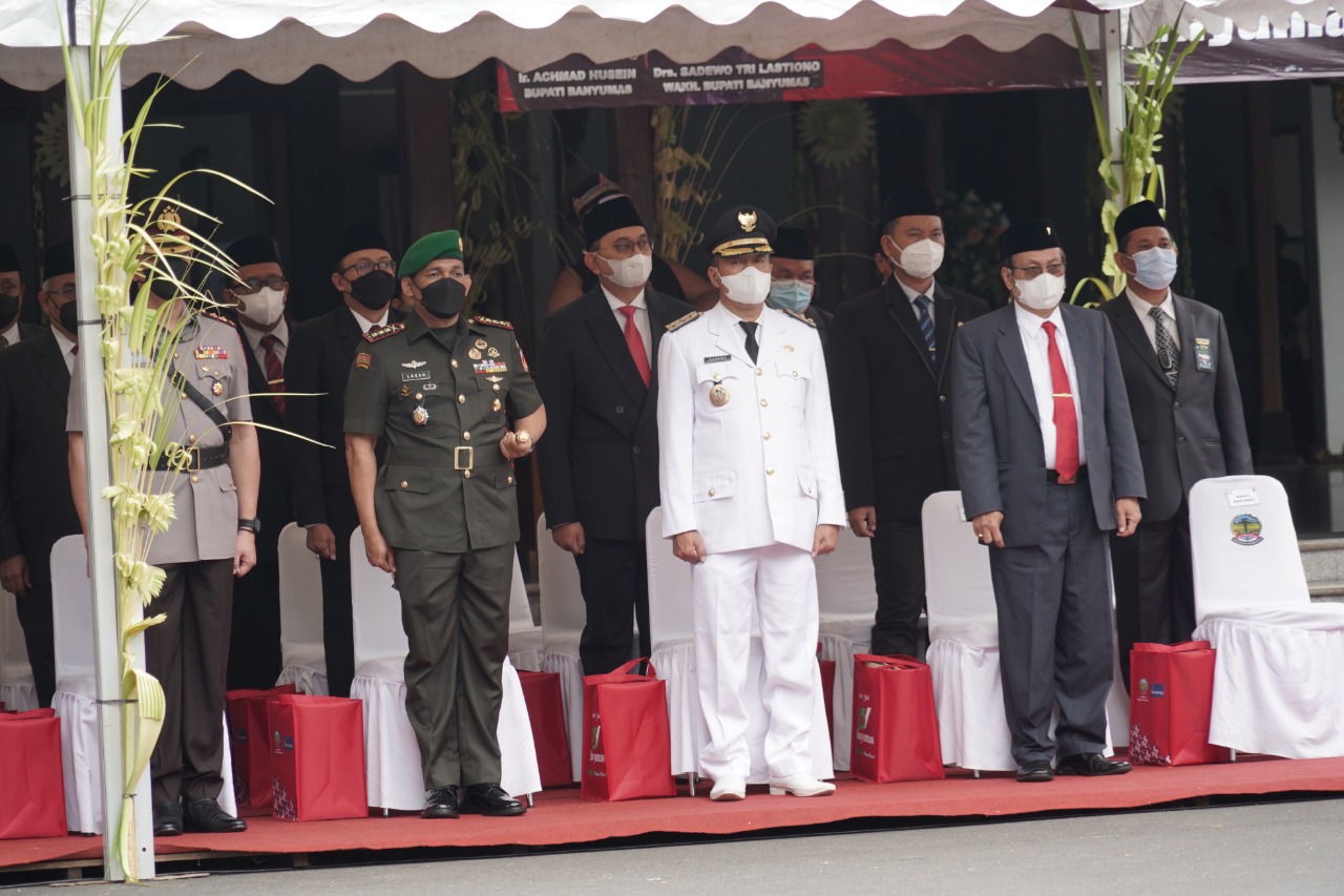 Upacara peringatan Hari Jadi ke-451 Kabupaten Banyumas dilaksanakan secara sederhana dengan menerapkan protokol kesehatan. Hadir dalam upacara tersebut diantaranya Danrem 071/Wijayakusuma Kolonel Inf Dwi Lagan Safrudin, S.I.P., Bupati Banyumas Ir. Ahmad Husein sekaligus selaku Inspektur Upacara, Wakil Bupati Banyumas Drs. Sadewo Tri Lastiono beserta segenap Forkopimda, serta perwakilan komponen dan elemen masyarakat Banyumas.