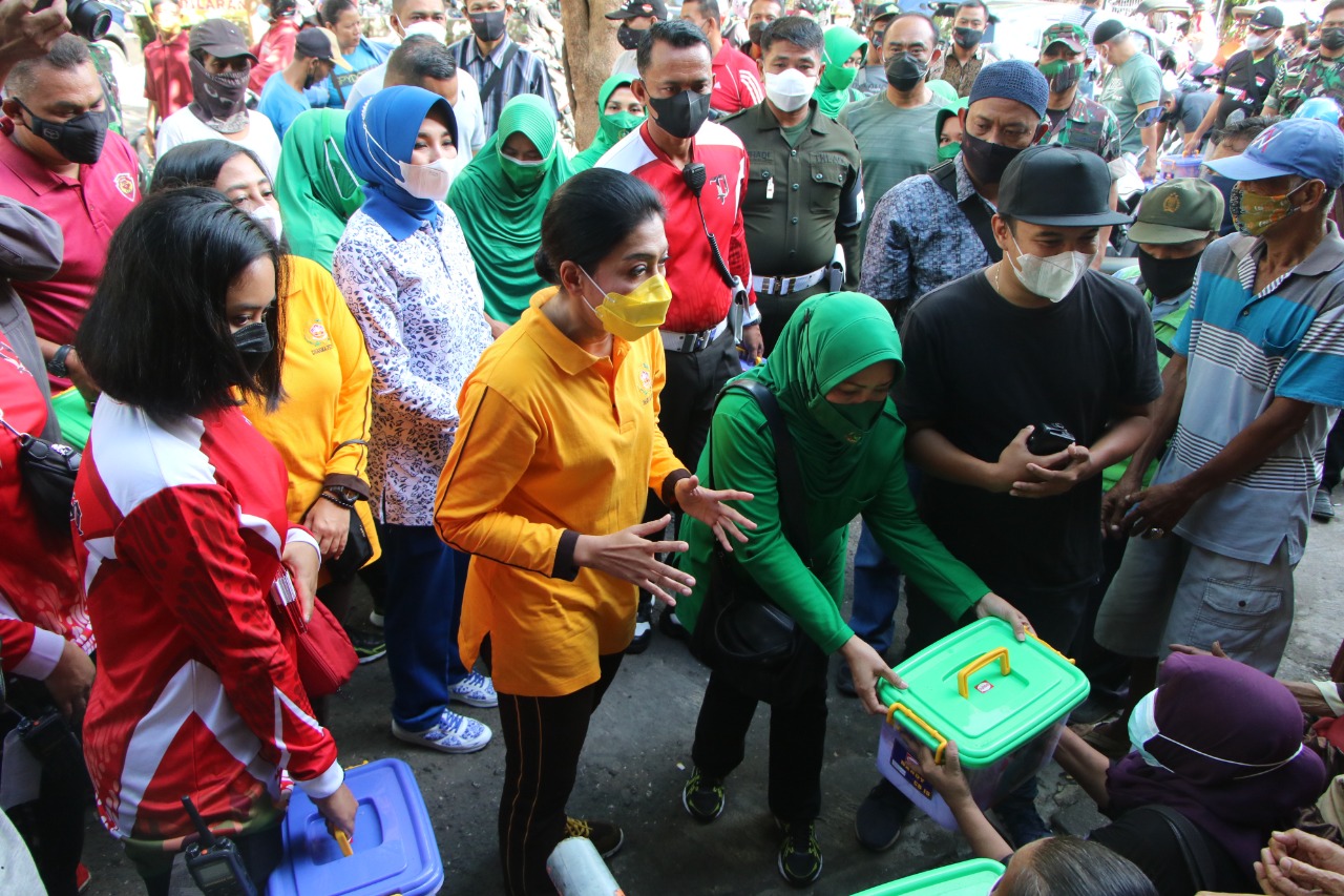 Yogyakarta – Pelitakota.id Danrem 072/Pamungkas Brigjen TNI Afianto dan Ketua Persit Koorcab Rem 072 PD IV/Diponegoro Ny. Rina Afianto mendampingi Ketua Umum Dharma Pertiwi Ny. Hetty Andika Perkasa menggelar bakti sosial (baksos) di Pasar Beringharjo, Ngupasan, Gondomanan, Kota Yogyakarta. Kamis, (2/12/2021).