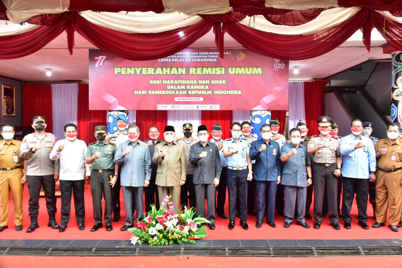 Sambutan Menteri Hukum dan HAM RI yang dibacakan oleh Gubernur Kaltim H. Isran Noor Gubernur Kaltim, “Bertepatan dengan Peringatan Hari Ulang Tahun ke-77 Kemerdekaan Republik Indonesia, Pemerintah memberikan remisi kepada 168.916 orang Narapidana terdiri dari yang mendapat Remisi Umum (pengurangan sebagian) adalah sebanyak 166.191 orang, dan yang mendapat Remisi Umum II, dimana setelah mendapatkan Remisi ini dinyatakan langsung bebas adalah sebanyak 2.725 orang”.