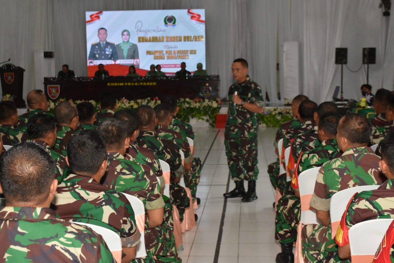 Danrem 091/ASN Brigjen TNI Dendi Suryadi, S.H, M.H didampingi Ketua Persit Kartika Chandra Kirana Koorcab Rem 091 PD VI/Mulawarman Ny. Ira Dendi Suryadi mengatakan “Paser merupakan wilayah terakhir setelah saya kunjungi selama 6 bulan semasa saya menjabat menjadi Danrem 091/ASN”.