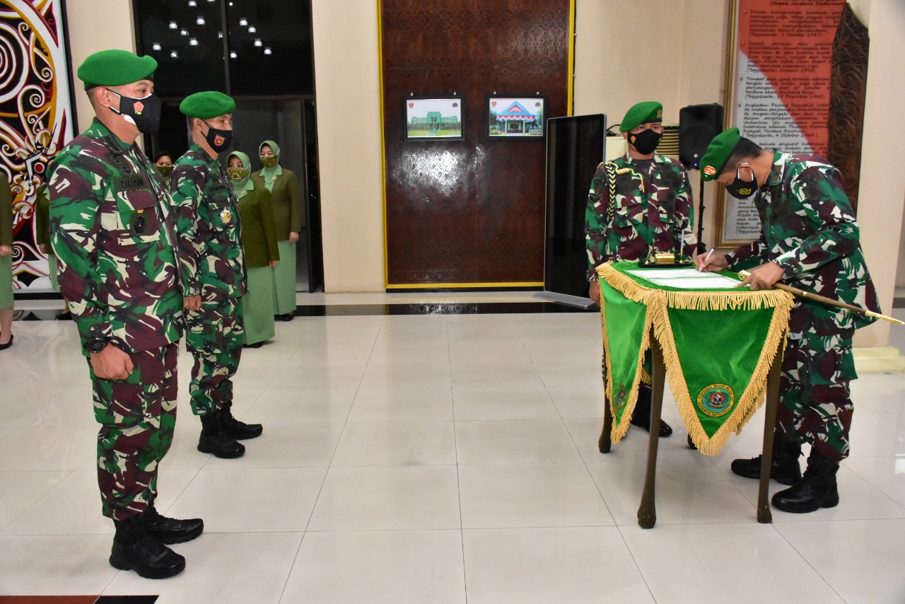 Samarinda – Pelitakota.id Danrem 091/ASN Brigjen TNI Cahyo Suryo Putro, S.I.P., M.Si.Pimpin acara serah terima jabatan Kepala Seksi(Kasi) Teritorial Kasrem 091/ASN serta tradisi penerimaan dan pelepasan warga Korem 091/ASN di Hall Makorem 091/ASN Jl. Gajah Mada No. 11 Kel. Bugis Kec. Samarinda Kota Kota Samarinda pada Sabtu (30/10/2021).