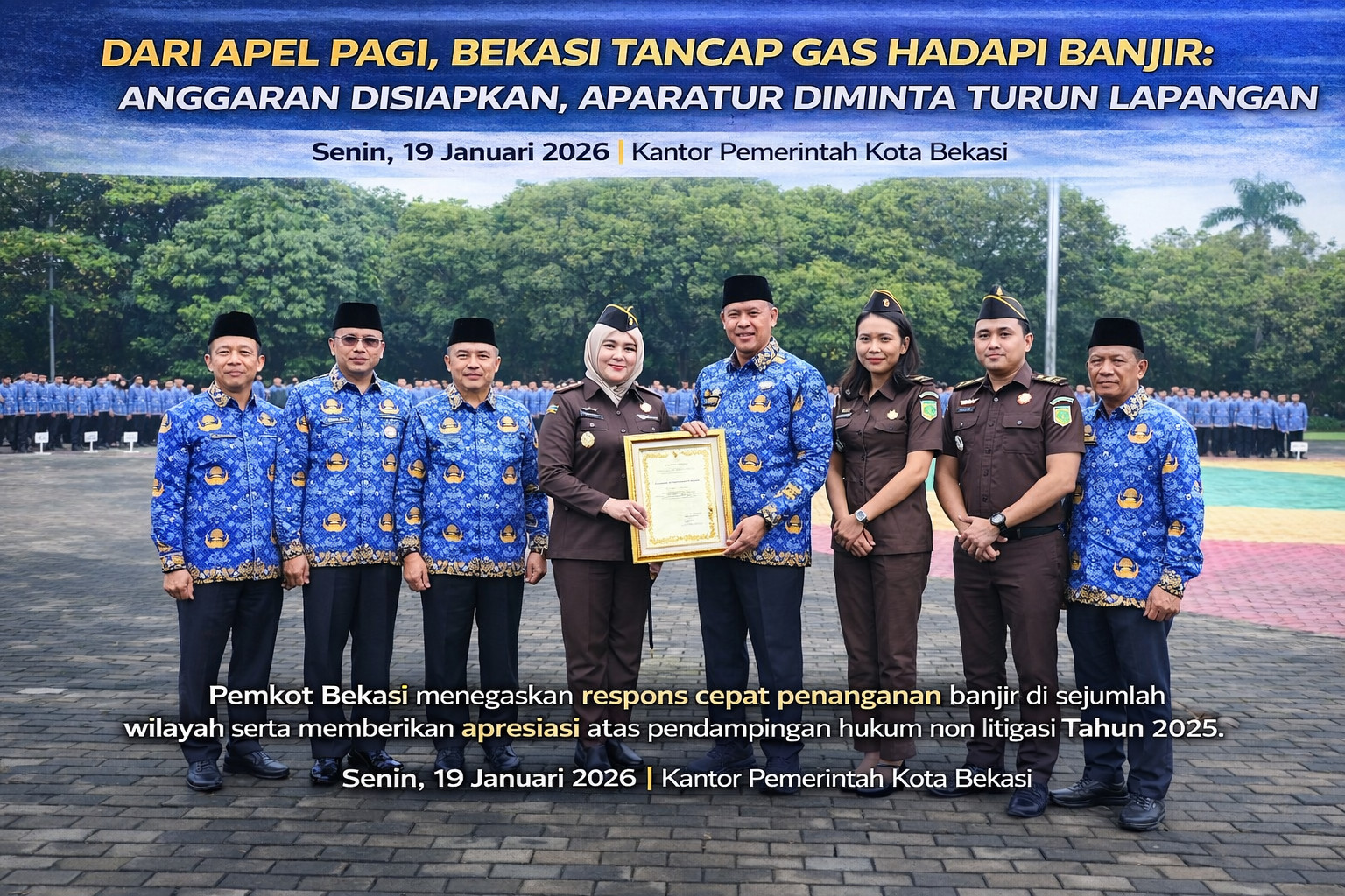 Apel juga dirangkaikan dengan penyerahan penghargaan kepada Kejaksaan Negeri Kota Bekasi atas bantuan hukum non litigasi dan pendampingan bidang perdata serta tata usaha negara sepanjang 2025 terhadap Badan Pendapatan Daerah Kota Bekasi.