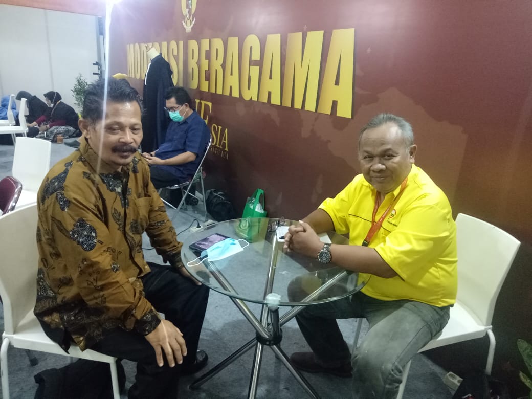 Yogyakarta – dari Arena Pesparawi Nasional di JEC Stand Hall C pada Pukul 09 Pagi Awak media yang tergabung di Pewarna Indonesia Propinsi DIY di sambut oleh Pembimas Budha Kanwil Kemenag DIY Drs Saryono tepatnya di Stand Kanwil Kemenag (Kamis 23.6.22).