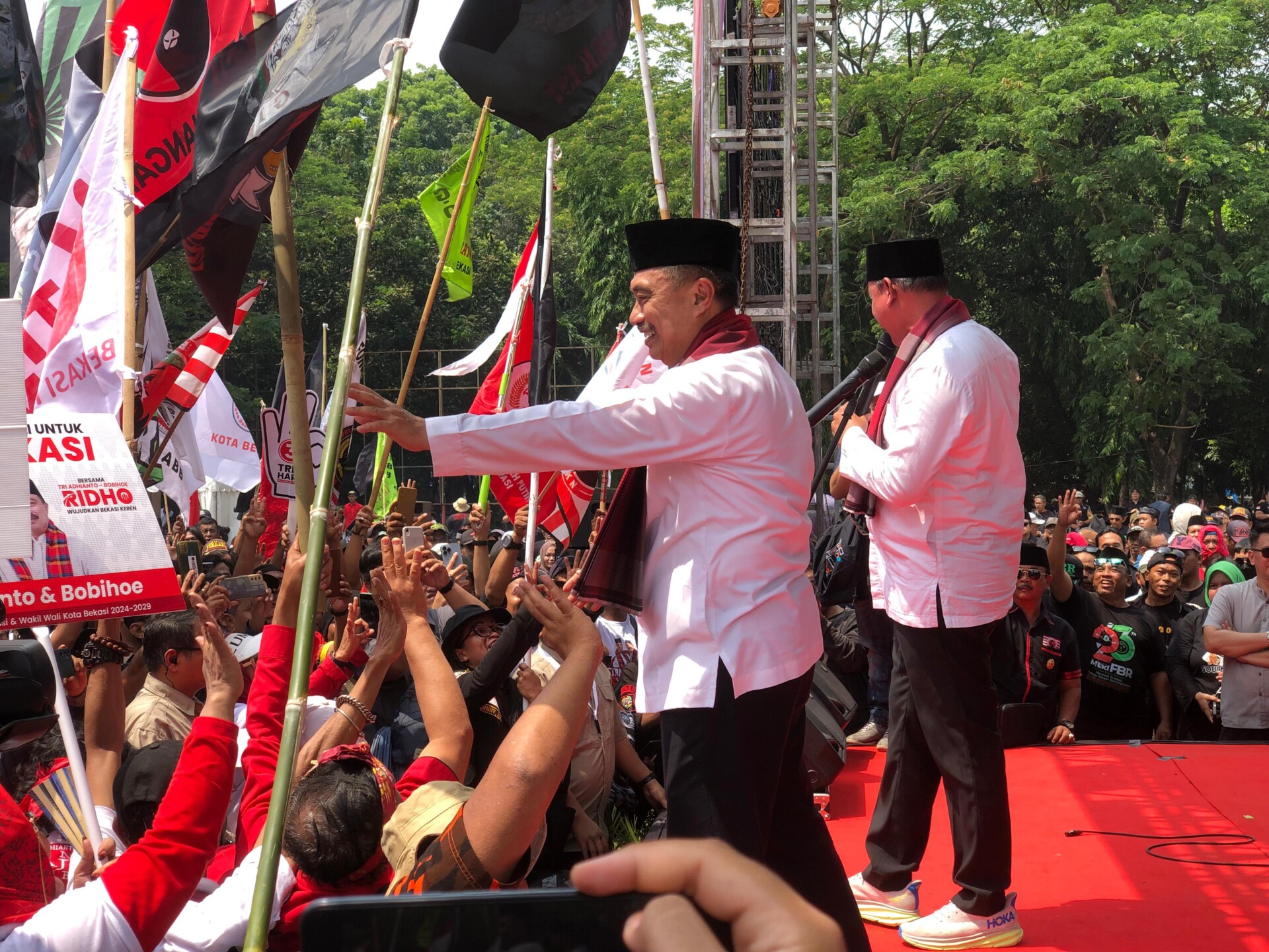 Bekasi, Rabu 26 September 2024- Komisi Pemilihan Umum Daerah (KPUD) Kota Bekasi, menggelar Deklarasi Kampanye Damai Pilkada 2024, di alun-alun M Hasibuan, Selasa 25 September 2024.