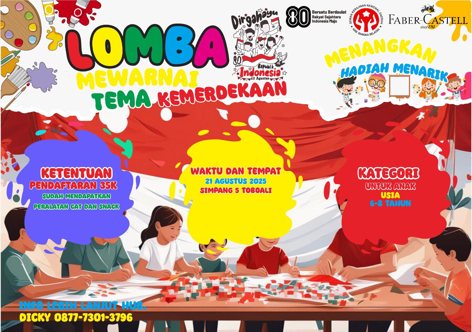 - Lomba Mewarnai Bertema Kemerdekaan: Ajak anak-anak Anda untuk menumbuhkan semangat nasionalisme sejak dini dengan mengikuti lomba mewarnai yang seru dan menarik. Lomba ini akan diikuti oleh anak-anak usia 6-8 tahun dan akan dinilai oleh juri yang kompeten.