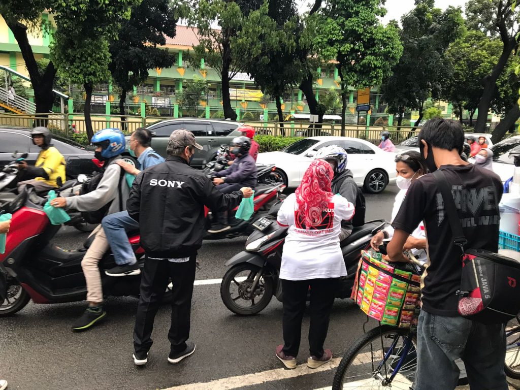 Jakarta – Memasuki bulan Ramadhan, Dewan Pimpinan Pusat Kawan Ganjar Bersatu Nasional (DPP. KGBN) menghentikan sementara program Jum’at Barokah yaitu, membagikan paket makan siang setiap hari Jum’at setelah sholat Jum’at. Sebagai gantinya adalah pembagian paket takjil setiap hari Jum’at menjelang berbuka puasa. Pada hari Jum’at (08/04) ini pembagian paket takjil dilakukan di jalan Syafei Tebet, Jakarta Selatan. Hadir dalam pembagian paket takjil hari itu, Ketua Umum KGBN Juliant Palar, wakil ketua 1 Fahmi dan wakil ketua 2 Dewi Niken serta ketua relawan DPD. KGBN Jakarta Selatan dan lainnya.