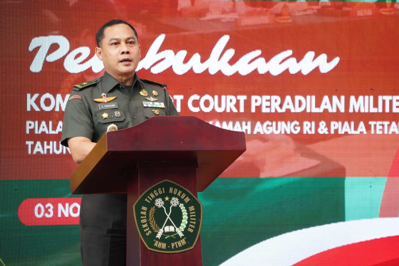 JAKARTA, – Kompetisi Moot Court Peradilan Militer memperebutkan Piala Bergilir Mahkamah Agung RI dan Piala Tetap Kasad resmi dimulai dan dibuka secara langsung oleh Ketua Sekolah Tinggi Hukum Militer (STHM) Brigjen TNI Dr. Ateng Karsoma, S.H., M.Kn., di Lapangan STHM, Jakarta Timur. Kamis, (3/11/2022).