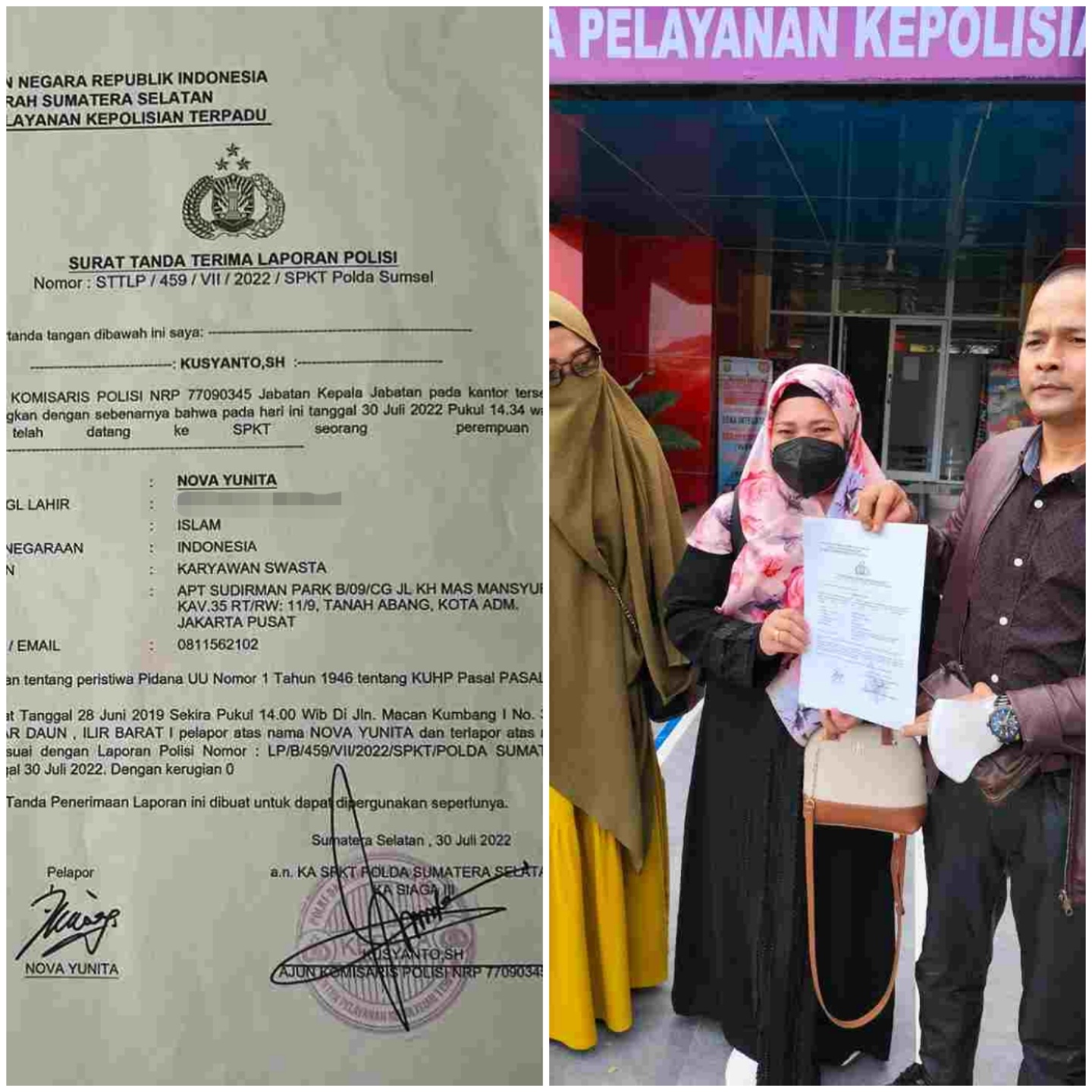 Laporan NY langsung diterima oleh penyidik SPKT Polda Sumsel, AIPTU Henri Wijaya, dengan Nomor : STTLP/459/VII/2022/SPKT Polda Sumsel.