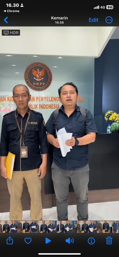 “Hari ini kami melaporkan ketua KPU RI di DKPP atas dugaan telah melakukan penyalahgunaan wewenang serta melanggar Kode Etik dan Pedoman Perilaku Penyelenggara Pemilihan Umum,” Ungkap Direktur Presisi yang akrab disapa Demas saat memberikan keterangan kepada wartawan.