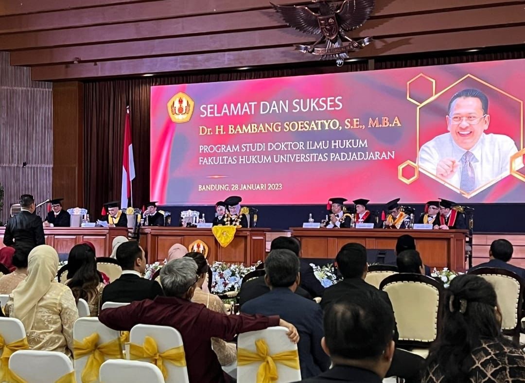 “Kewenangan subjektif superlatif itu juga penting berada di MPR jika negara dihadapkan pada situasi kebuntuan politik antar lembaga negara atau antar cabang kekuasaan. Misalnya, kebuntuan politik antara lembaga kepresidenan (pemerintah/eksekutif) dengan lembaga DPR (legislatif) atau kebuntuan politik Pemerintah dan DPR dengan lembaga Mahkamah Konstitusi (yudikatif). Siapa yang berhak memutuskan jika terjadi suatu kondisi force majeure atau kahar fiscal dalam skala besar, namun terjadi kebuntuan antara presiden dan DPR? Mengingat, dalam Pasal 22 UUD 1945 yang terdiri atas tiga ayat. Ayat pertama, dalam hal kegentingan yang memaksa. Presiden berhak menetapkan peraturan pemerintah sebagai pengganti undang-undang. Ayat kedua, peraturan pemerintah harus mendapat persetujuan DPR. Ayat ketiga, jika tidak mendapat persetujuan DPR, maka peraturan pemerintah itu harus dicabut. Lalu, jika terjadi perseteruan antara presiden (pemerintah) dengan DPR, sementara negara masih dalam situasi kedaruratan yang tinggi siapa yang menengahi? Menurut saya yang paling tepat adalah MPR sebagai representasi pemegang kedaulatan rakyat,” ujar Bamsoet menjawab pertanyaan Prof Mahfud MD dan Yusril Izha Mahendra dalam Sidang Terbuka Promosi Doktor Ilmu Hukum dari FH Unpad, di Bandung, Sabtu (28/1/23).