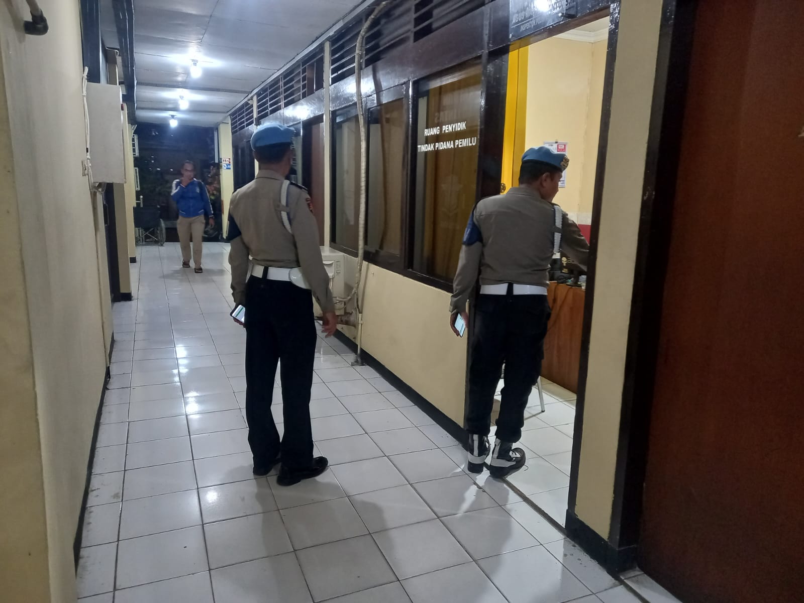“Cek anggota yang piket lengkap dan yang berjaga dalam keadaan siaga, serta mengingatkan agar tidak tidur waktu melaksanakan tugas/dinas, serta gerbang Polres dalam keadaan tertutup,” tambah Kasi Propam