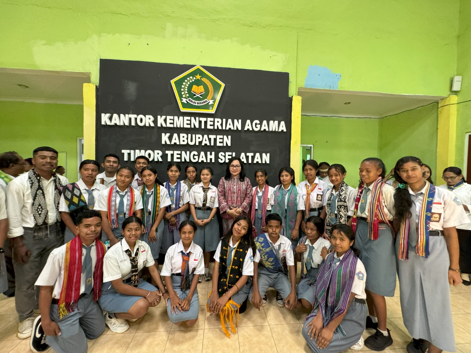 Setibanya di Kantor Kementerian Agama Kabupaten Timor Tengah Selatan, Dirjen disambut oleh Kepala Kantor Kementerian Agama Kabupaten Timor Tengah Selatan, ASN, Siswa-siswi dari sekolah keagamaan yang ada di Kabupaten TTS, para tokoh agama, dan masyarakat setempat. Sambutan dengan peletakkan kain khas NTT di pundak sebagai tanda penghormatan atas kehadiran tamu serta tarian dari para siswa Madrasah Aliyah Al-Hikmah Soe menjadi pembuka yang penuh warna dan menunjukkan kekayaan budaya lokal serta keragaman yang ada di NTT.