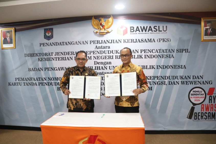 Jakarta – PK NEWS Direktorat Jenderal (Ditjen) Kependudukan dan Pencatatan Sipil (Dukcapil) Kementerian Dalam Negeri (Kemendagri) selalu mendukung penuh kegiatan penyelenggaraan pemilu di Indonesia termasuk yang bakal digelar pada 2024 mendatang. Hal ini salah satunya ditandai dengan Penandatanganan Perjanjian Kerja Sama (PKS) tentang Pemanfaatan NIK, Data Kependudukan dan KTP-el dalam Lingkup Fungsi dan Wewenang Badan Pengawas Pemilihan Umum (Bawaslu) di Jakarta, Kamis (22/12/2022).