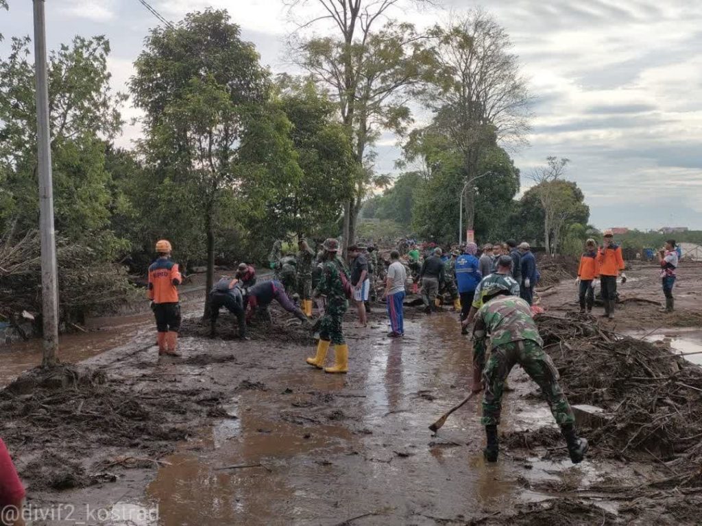 KOTA BATU – PELITAKOTA.ID Divisi Infanteri (Divif) 2 Kostrad menetapkan status Satuan jajarannya untuk Siaga Bencana Alam (S3B) yang terjadi di daerah Batu, Malang, Jawa Timur. Dipicu karena curah hujan dengan intensitas tinggi dan adanya sumbatan batang-batang kayu di hulu sungai menyebabkan terjadinya banjir bandang pada hari Kamis. (04/11/2021).