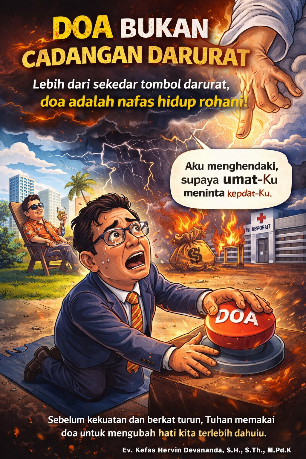 Ada satu kebiasaan rohani yang sering tidak kita akui: kita memperlakukan doa seperti tombol darurat. Dipakai hanya ketika keadaan gawat. Saat bisnis lancar, kesehatan baik, relasi harmonis—doa menjadi formalitas. Tetapi ketika badai datang, barulah kita panik mencari Tuhan.