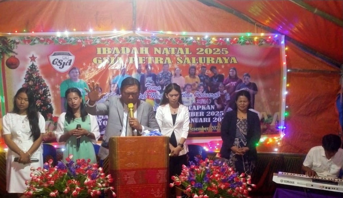 Pasangkayu,24 Desember 2025 Suasana sukacita, damai, dan kebersamaan meliputi Dusun Saluraya, Desa Gunungsari, Kabupaten Pasangkayu, ketika GSJA Petra Saluraya menggelar Ibadah Perayaan Natal dengan tema “Allah Hadir di Tengah Keluarga” pada Selasa, 23 Desember 2025. Seluruh jemaat dan para undangan berkumpul pada hari dan tanggal itu untuk merayakan momen agung ketika Allah turun ke dunia.