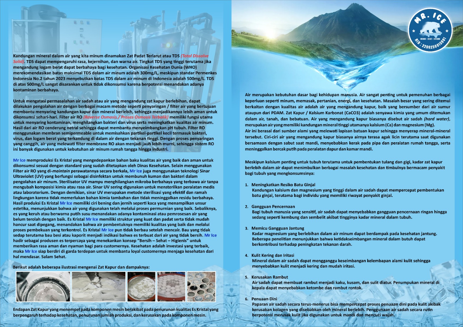 Bogor, Indonesia – Kami dengan bangga memperkenalkan Es Kristal berkualitas tinggi yang diproses dengan teknologi canggih dan standar kebersihan yang tinggi. Cocok untuk cafe, restoran, rumah makan, dan resort yang ingin meningkatkan kualitas pelayanan.