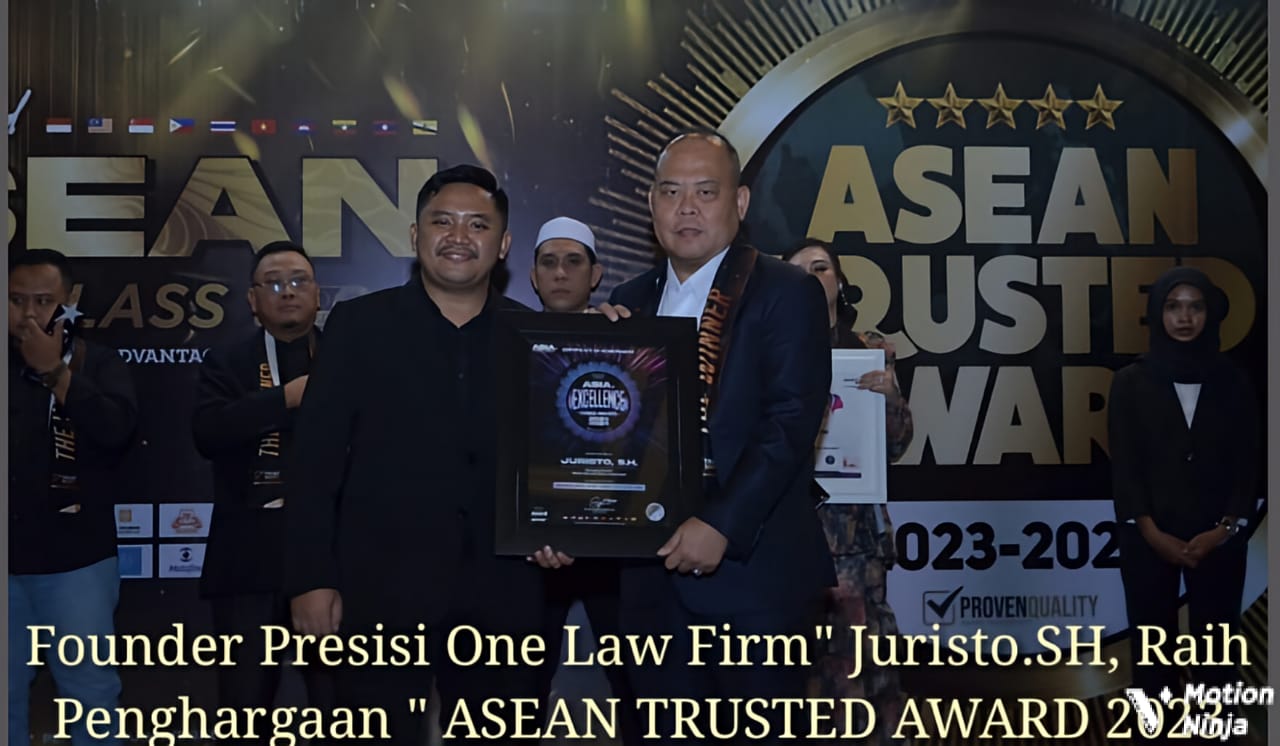 Hal tersebut menjadi sebuah capaian positif sekaligus kehormatan bagi saya di Firma Hukum Presisi One Law Firm, walaupun Usia Firma Hukum kami masih terbilang muda yaitu 3 tahun akan tetapi atas pencapaiannya sangat luar biasa apalagi terkait dalam penyelesaian perkara Pidana dan Perdata dan di Ajang ASEAN TRUSTED AWARD berhasil meraih penghargaan dalam kategori Gala Arwad Winner Class” ujar Juristo.