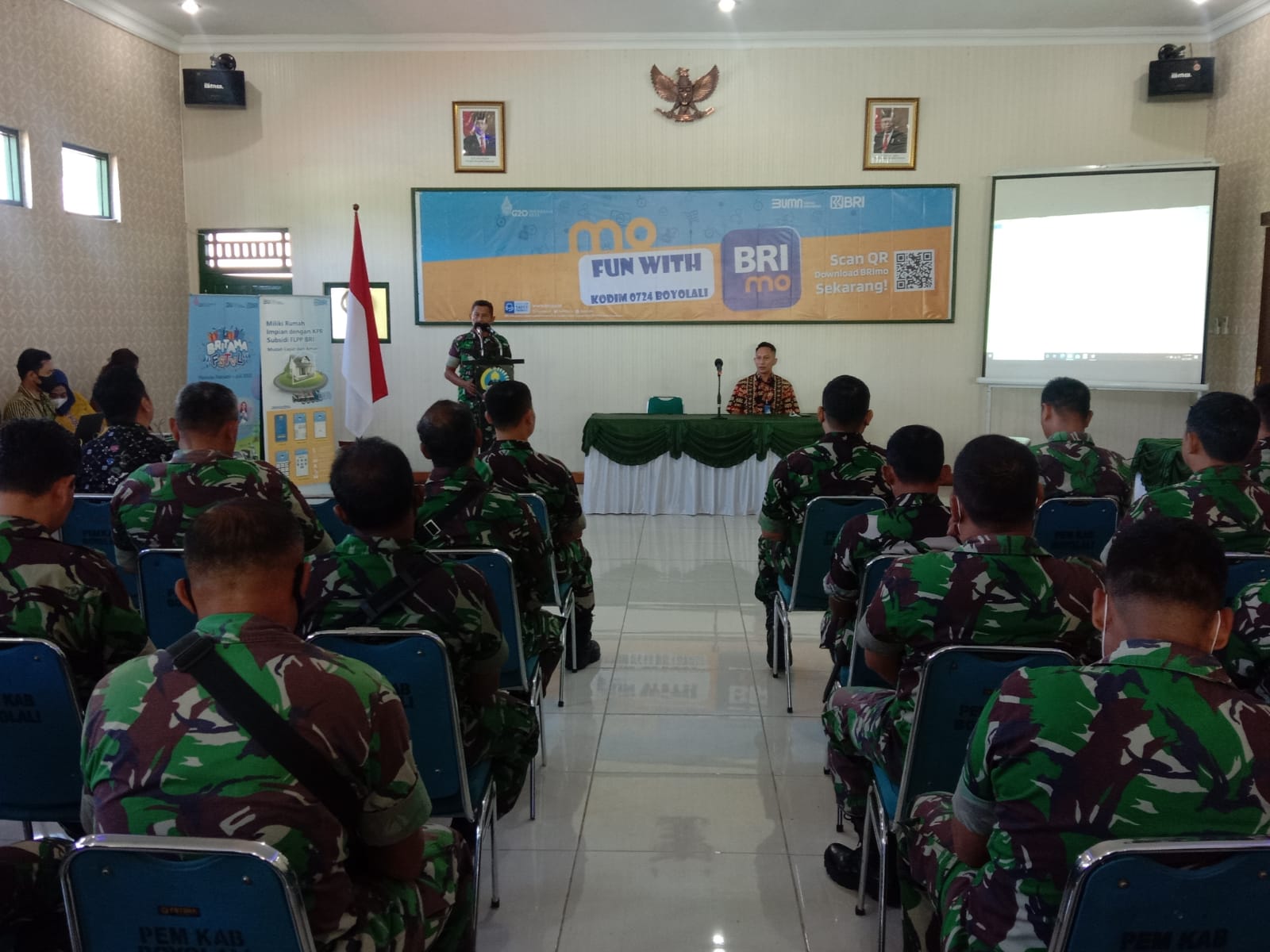 BRI cabang Boyolali melaksanakan sosialisasi aplikasi BRImo bertempat di Aula Kodim Boyolali. Jl. Padanaran Desa Tegalmulyo Kecamatan Mojosongo Kabupaten Boyolali. Rabu ( 29/6/2022)