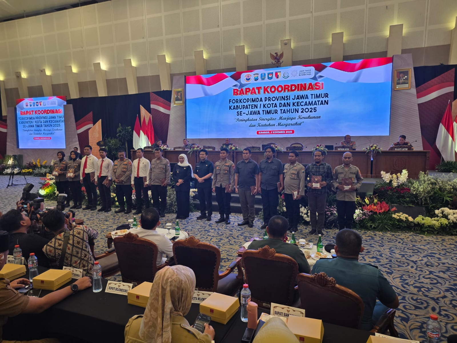 Tulungagung,pelitakota.id-Seluruh unsur Forum Koordinasi Pimpinan Daerah (Forkopimda) dan Forum Koordinasi Pimpinan Kecamatan (Forkopimcam) Kabupaten Tulungagung hadir lengkap dalam Rapat Koordinasi Forkopimda Provinsi Jawa Timur, Kabupaten/Kota, dan Kecamatan se-Jawa Timur Tahun 2025, yang digelar di Surabaya, Selasa(4/11/2025).