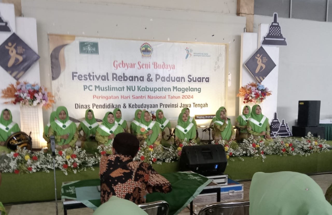 MAGELANG – Dalam rangka memperingati Hari Santri Nasional, PC Muslimat NU Kabupaten Magelang bersama Dinas Pendidikan dan Kebudayaan Provinsi Jawa Tengah menggelar Gebyar Seni Budaya Festival Rebana dan Paduan Suara di Gedung PCNU Kabupaten Magelang, Minggu (20/10/2024).