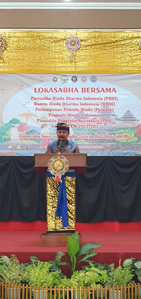 Tolitoli – Persatuan Hindu Dharma Indonesia (PHDI), Wanita Hindu Dharma Indonesia (WHDI), Perhimpunan Pemuda Hindu Indonesia (PRAJANITI), Pinandita Sangraha Nusantara (PSN) Indonesia Kabupaten Tolitoli Tahun 2022, menggelar Lokasabha Bersama (Musyawarah Daerah) di Aula Mitra Utama Tolitoli, Sabtu (8/1) yang dibuka secara resmi oleh Bupati Tolitoli diwakili Sekretaris Daerah Kabupaten Tolitoli Moh. Asrul Bantilan, S. Sos,