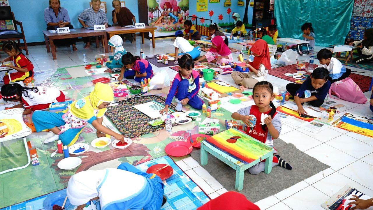 Didampingi orang tua dan para guru, anak-anak ini terlihat bersemangat menyuguhkan penampilan dan kreasi terbaiknya di hadapan juri. Ada yang lomba bernyanyi, finger painting, percakapan, hingga senam irama.