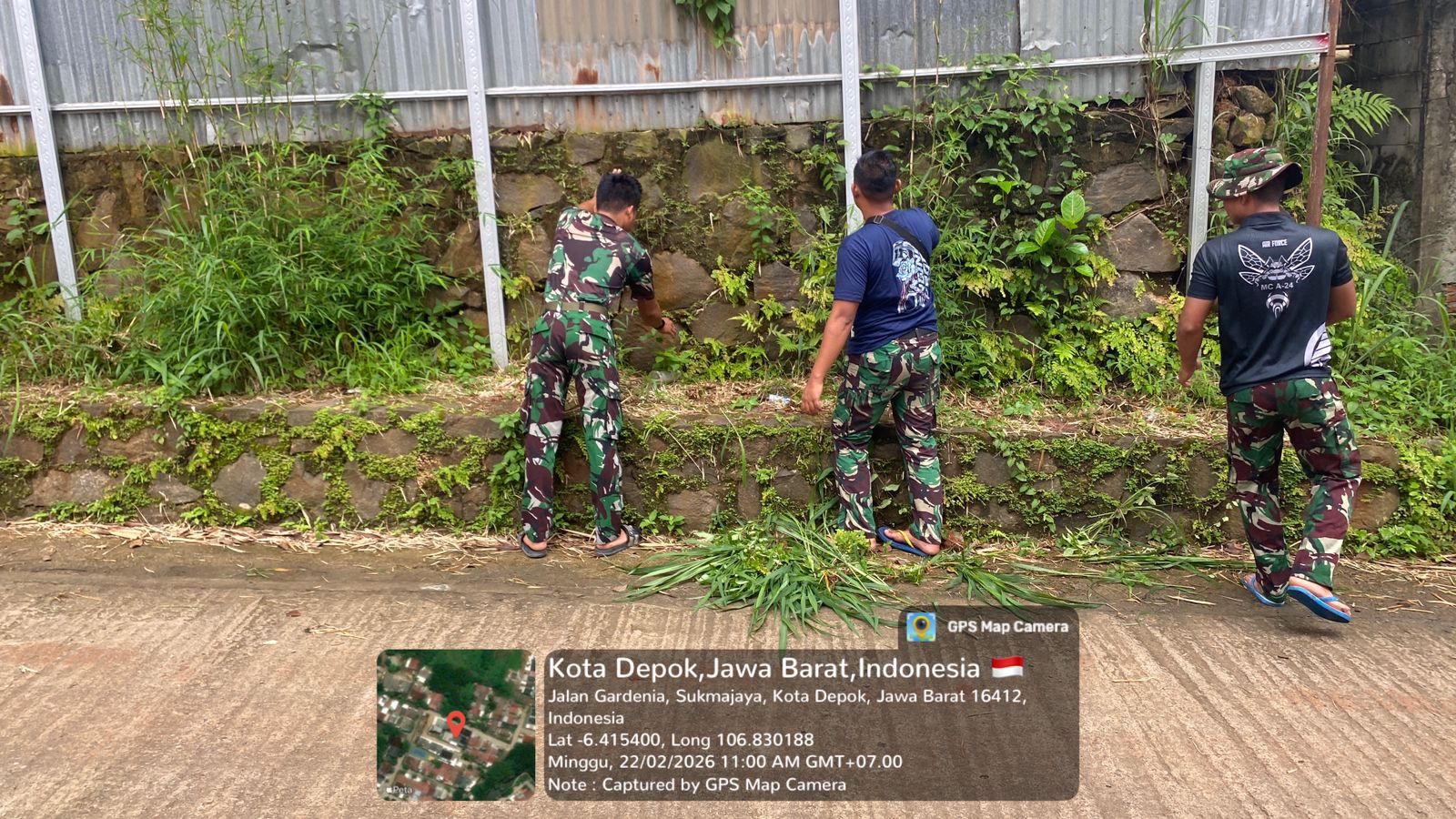 Depok – Memasuki H+12 pelaksanaan TMMD Ke-127, Satgas Kodim 0508/Depok melaksanakan kegiatan karya bakti di kawasan GDC Sektor Gardenia, Kelurahan Tirtajaya, Kecamatan Sukmajaya, Kota Depok, Minggu (22/2/2026).