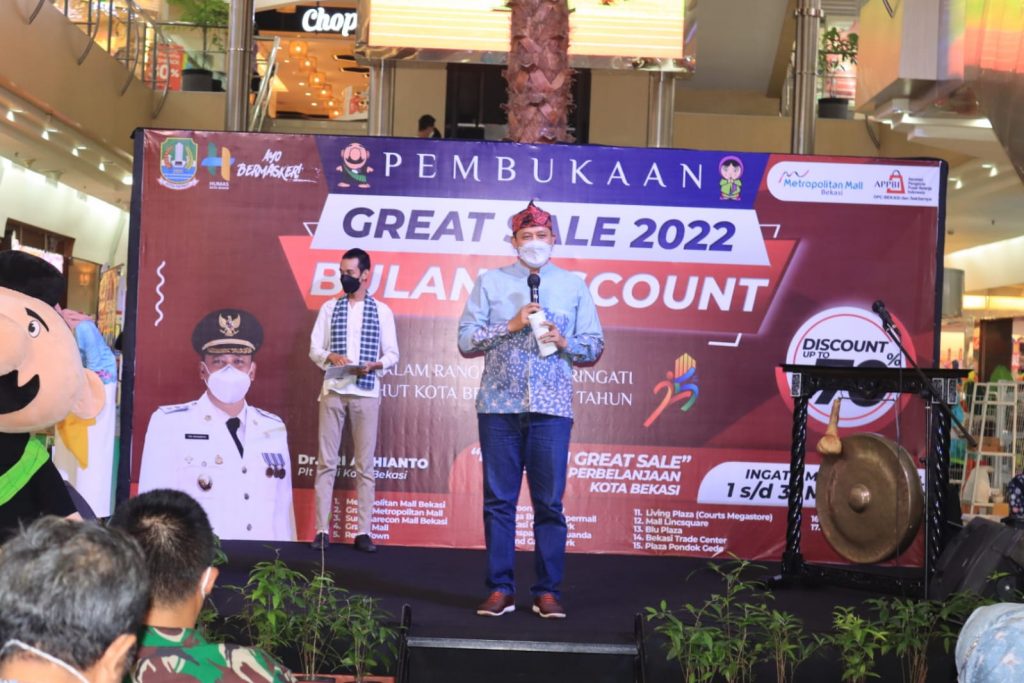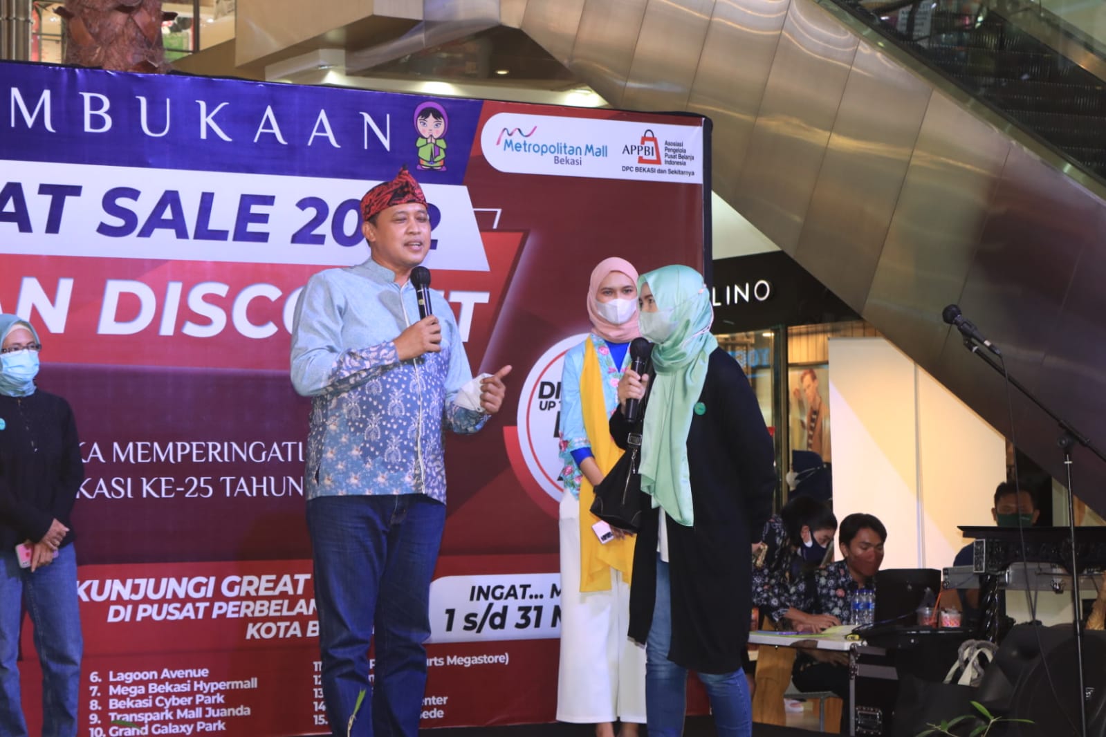 Pada hari ini, Pelaksana Tugas (Plt.) Wali Kota Bekasi, Tri Adhianto beserta istri, Wiwiek Hargono mendatangi Metropolitan Mall Bekasi didampingi Kepala Dinas Perdagangan dan Perindustrian Kota Bekasi, Tedi Hafni Tresnady untuk membuka gelaran Great Sale secara resmi. Hadir juga dalam kesempatan yang sama mendampingi Plt. Wali Kota Bekasi, Dandim 0507/Bekasi, Kolonel Arm Irwan Apriyanto, dan juga Sekretaris Daerah Kota Bekasi, Reny Hendrawati.