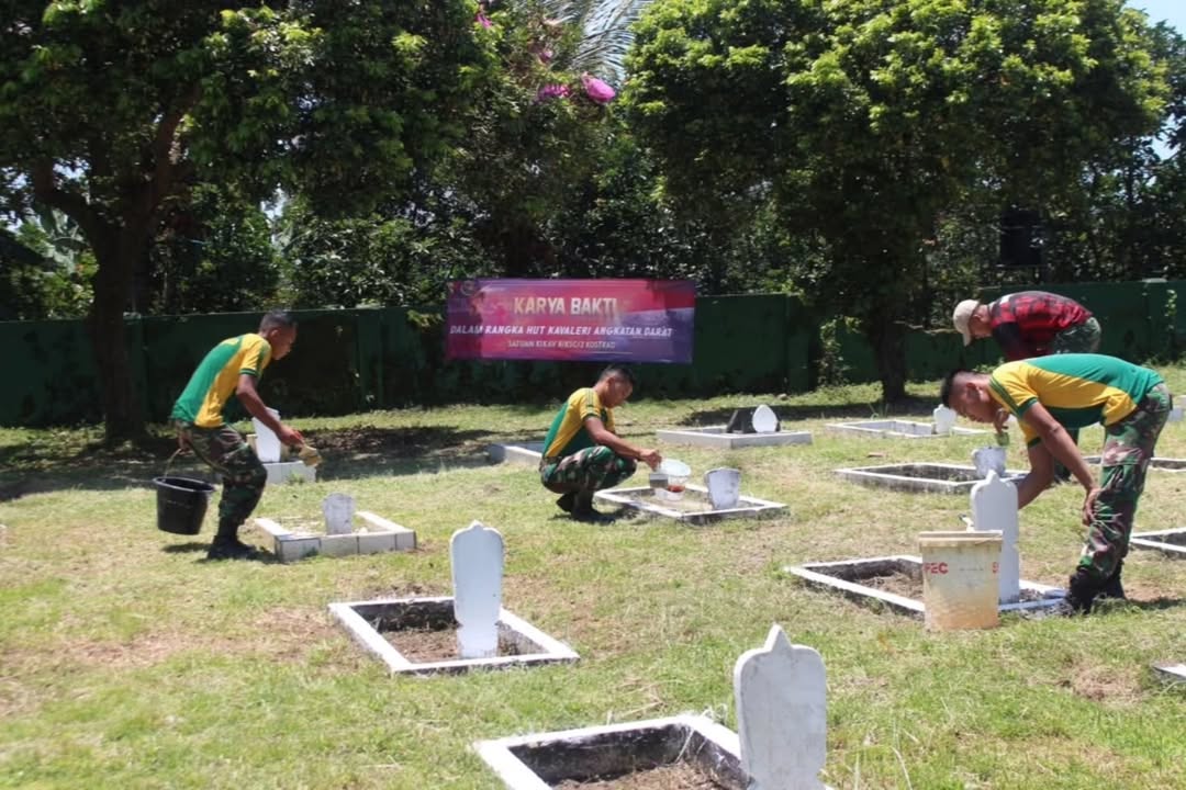 Malang – Dalam rangka memperingati HUT ke-75 Kavaleri Angkatan Darat, keluarga besar satuan Kikav 8/KSC/2 Kostrad melaksanakan beberapa rangkaian kegiatan untuk memeriahkannya. Adapun kegiatan karya bakti pembersihan lingkungan yang dilaksanakan di Taman Makam Pahlawan Tumpang, Desa Kebon Sari, Kecamatan Tumpang, Kabupaten Malang. (05/02/2025).