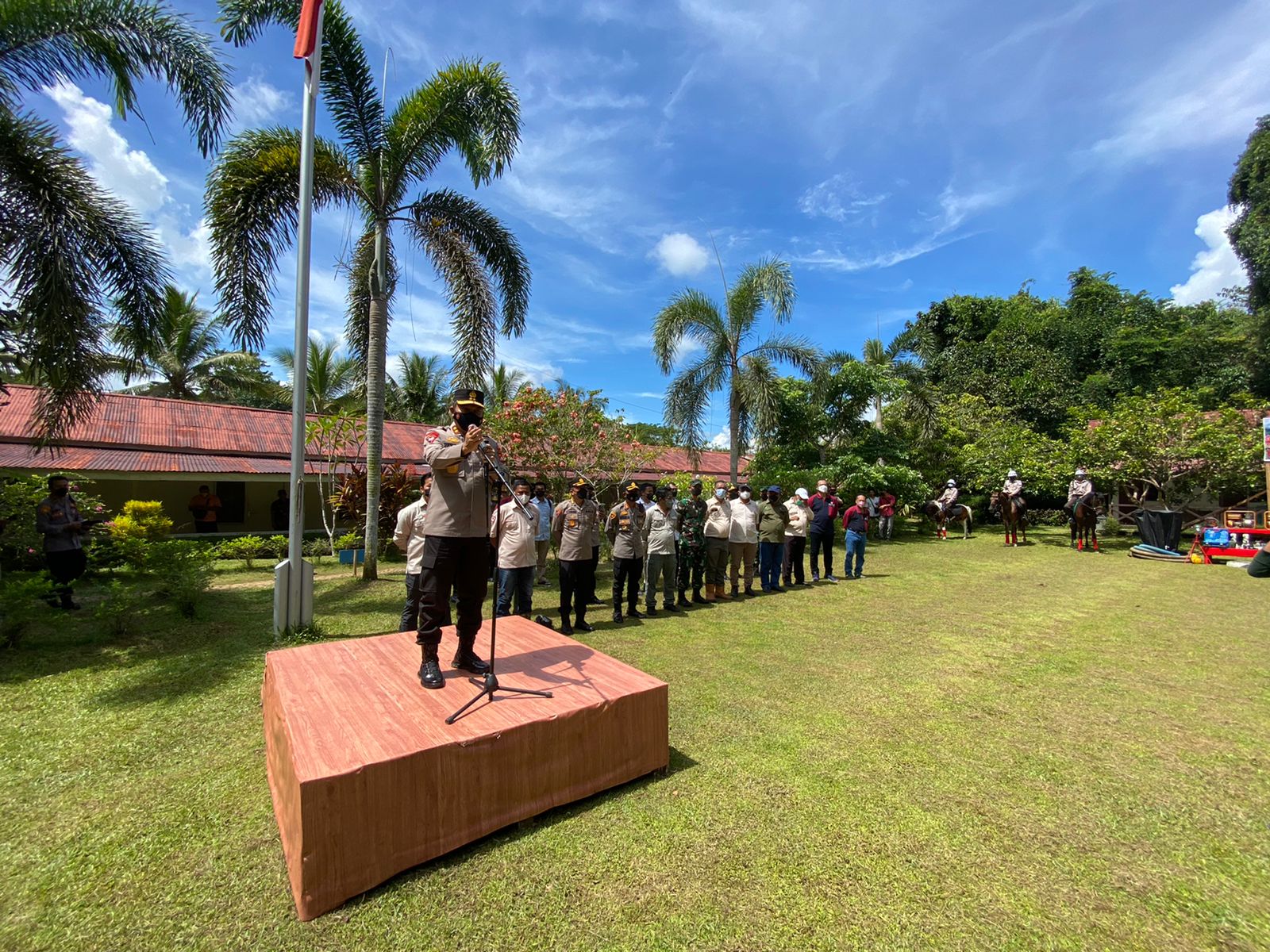 Pukul 11.15 Wib. Bapak Kapolda beserta rombongan tiba di Mess Duyuk PT. CUS dan disambut oleh para Manager Perusahaan. selanjutnya Pukul 11.20 Wib. dihalaman mess Duyuk Bapak Kapolda Kalbar mengambil apel siaga satgas pencegahan dan penanggulangan kebakaran hutan dan lahan.