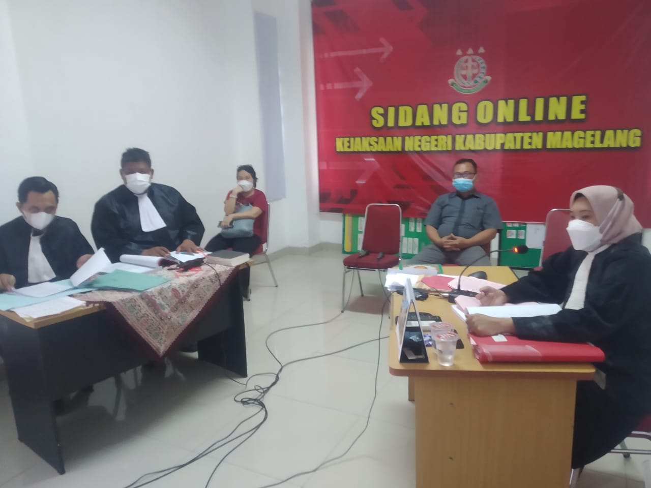 Magelang – Sidang perkara atas dugaan pidana Pasal 372 dan 378 dengan terdakwa Tan Gijanto memasuki agenda keterangan saksi-saksi di Kejaksaan Negeri Kabupaten Magelang Jawa Tengah bergulir secara online, Selasa 29 Maret 22.