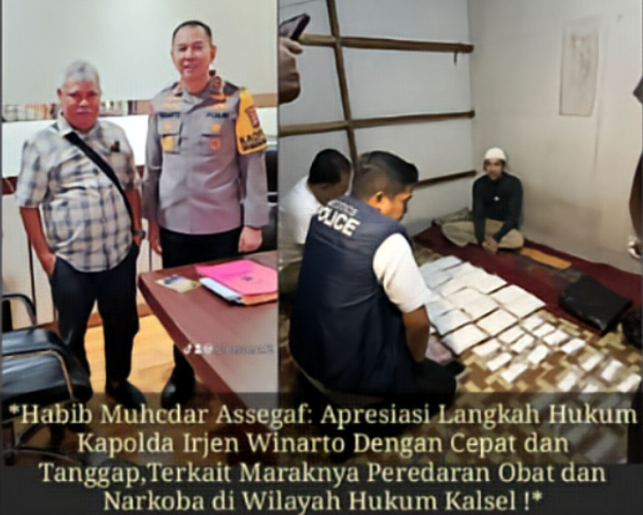 Habib Muhcdar menilai, apa yang disampaikan melalui pesan singkat nya kepada Bapak Kapolda Irjen Winarto” Kami mengapresiasi langkah tegas dan cepat Kapolda, terhadap penanganan kasus narkoba yang terjadi di wilayah hukum Kalimantan Selatan dan semua itu ditindak dengan profesional berdasarkan penegakan hukum sebagaimana mestinya, sesuai dengan aturan hukum yang berlaku,” katanya menegaskan ” Kamis 10 Juli 2024.
